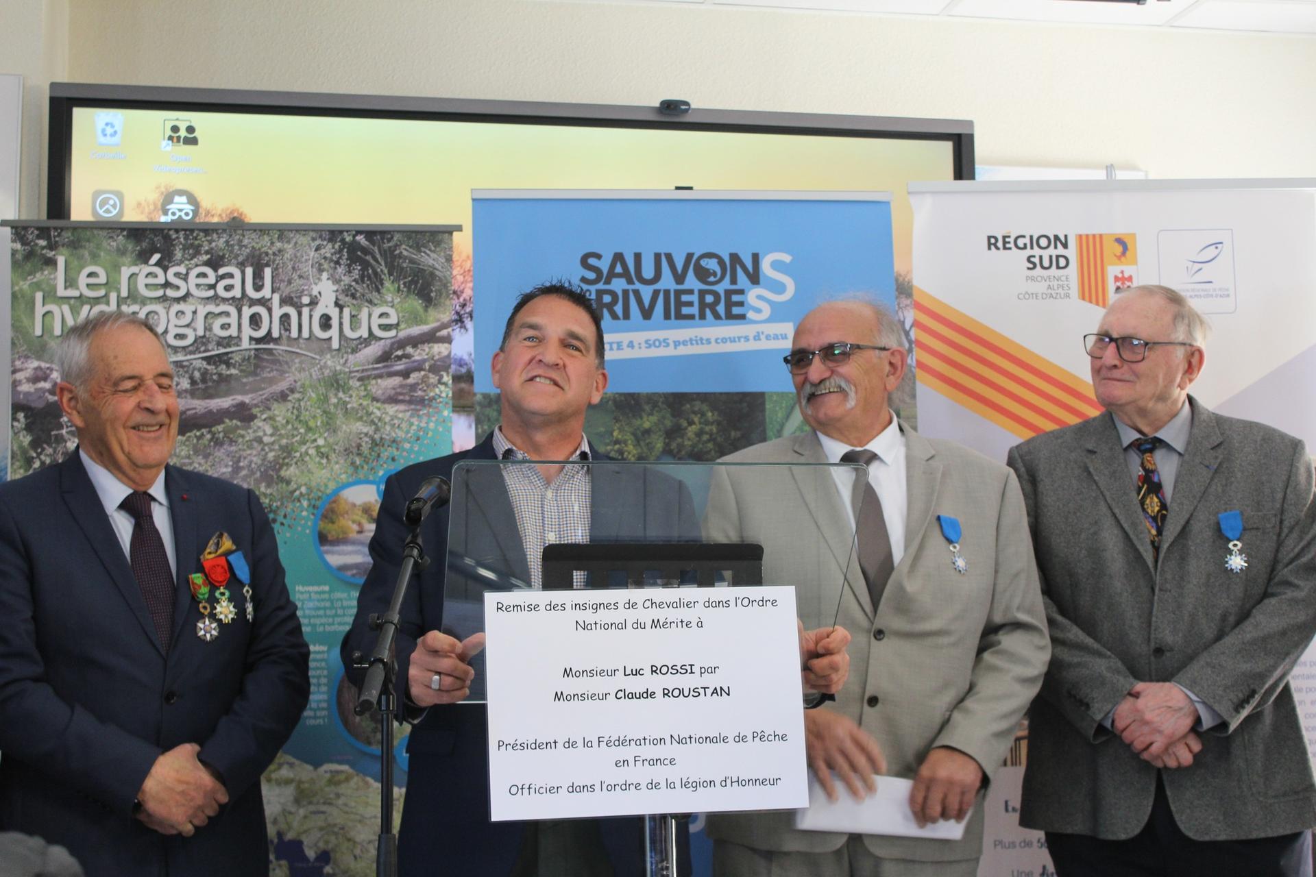 Le Président, Luc Rossi, s'est vu remettre l'insigne de Chevalier dans l'Ordre National du Mérite par Monsieur Claude Roustan Président de la Fédération Nationale de la Pêche en France FNPF et Officier dans l'Ordre de la Légion d'Honneur, une haute distinction amplement méritée qui traduit plus de 40 ans au service de la préservation des milieux aquatiques et du développement du loisir pêche dans notre région (Président fondateur de l'AAPPMA Infernet Cadière) dont plus de 25 ans au titre de Président de la Fédération de pêche des Bouches du Rhône, 10 ans au titre de Président de notre Association Régionale et presque autant au titre de Président de l'Association Migrateurs Rhône-Méditerranée, entre autres fonctions et après avoir servi son pays dans la Police Nationale pendant 35 ans.